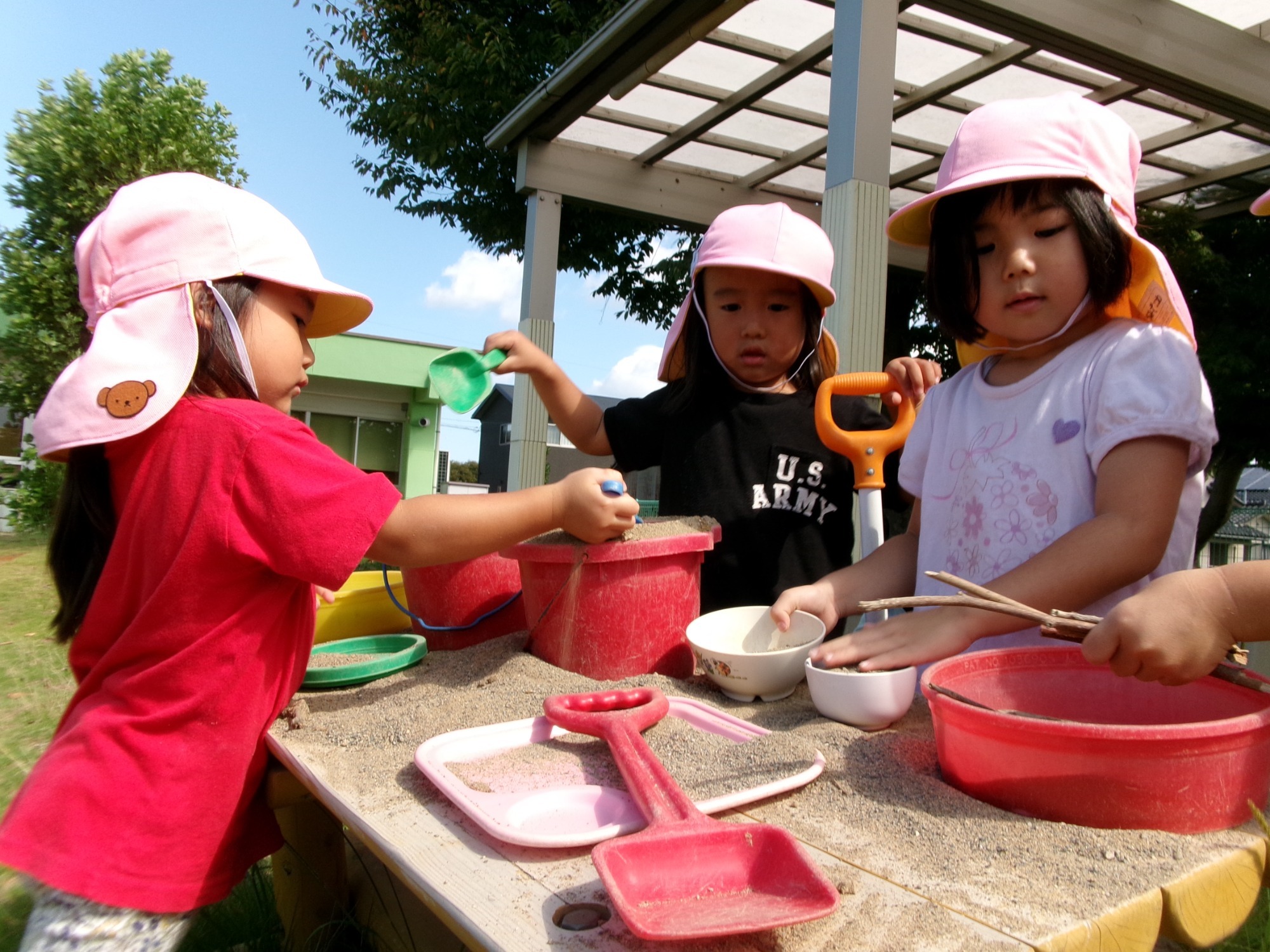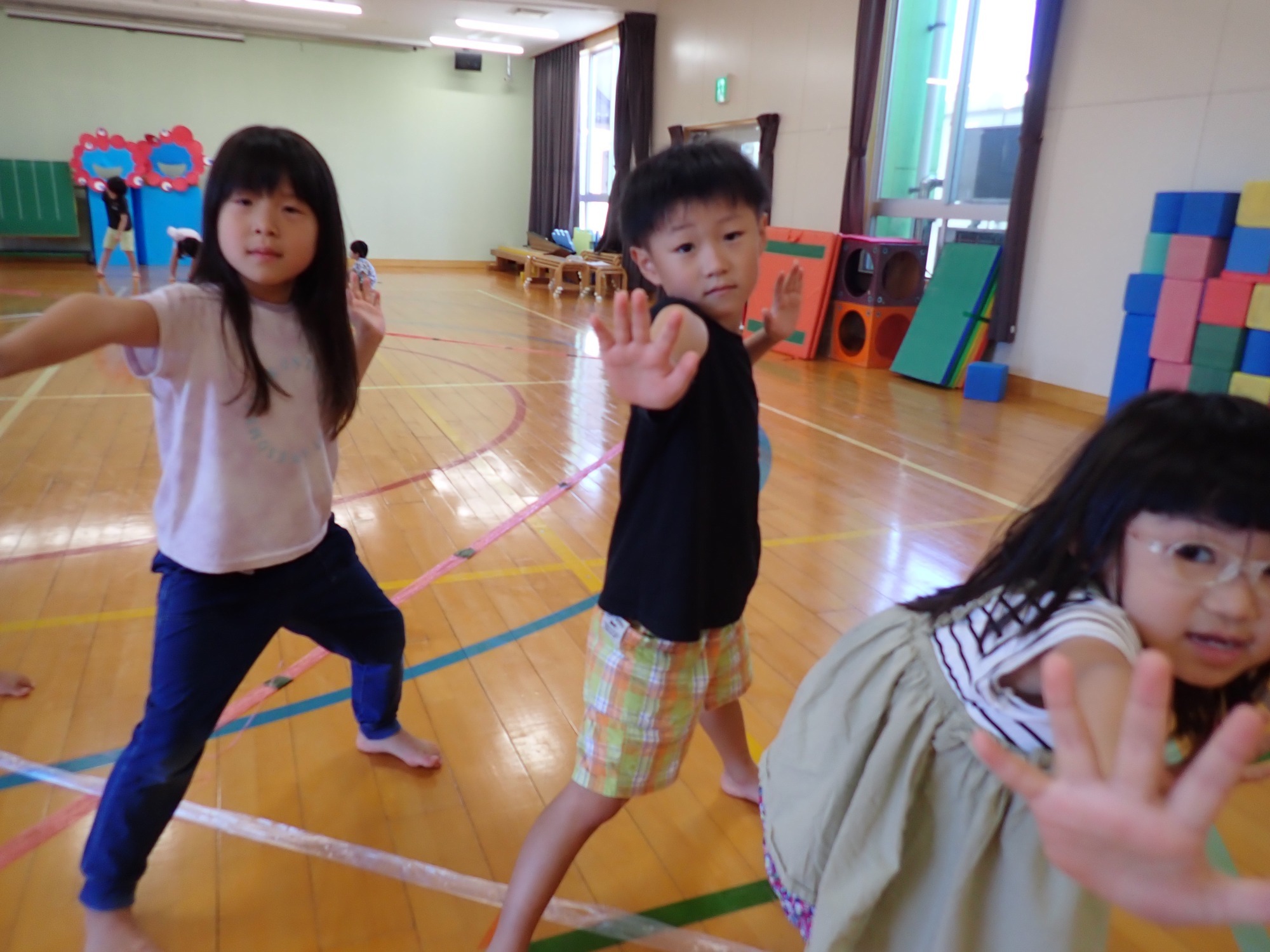 野菜の苗を植えたよ・水遊びきもちいい~♬体育教室の様子